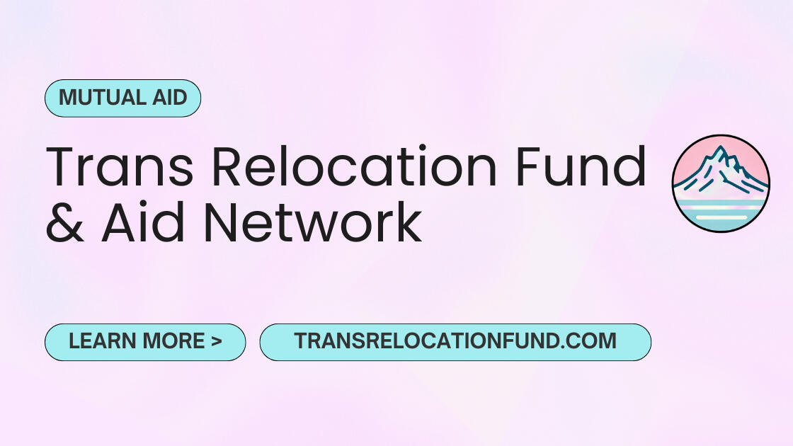 As someone who volunteers in trans relocation, I can say with certainty that some much-needed resources are spare couches or guest rooms for temporary stays, local or cross-country rides, and donations to fundraisers for folks who need to relocate ASAP. Contact a local org or one in the Relocation section to offer these kinds of support!